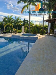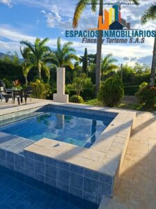 - Casa principal: Apta para 25 personas máx., 5 alcobas, 5 baños, cocina equipada con lo necesario, sala de estar y comedor.